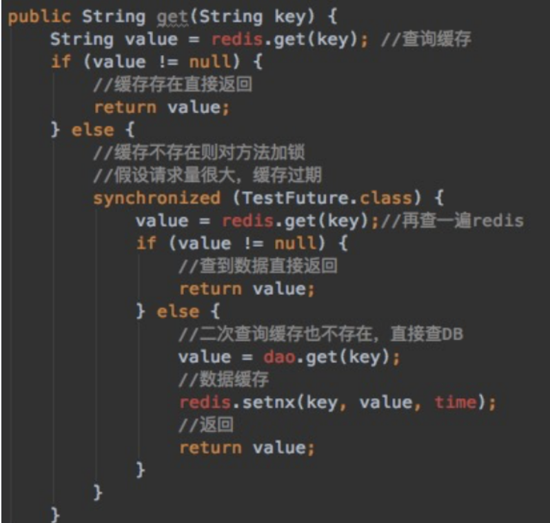 其他的线程走到这一步拿不到锁就等着,等第一个线程查询到了数据,然后做缓存。后面的线程进来发现已经有缓存了,就直接走缓存。