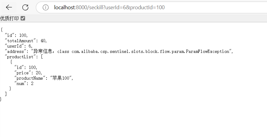 public Order seckillFallback(Long userId, Long productId, BlockException exception) {